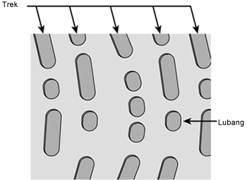 Rajah1: Permukaan cakera yang berlubang tempat data disimpan